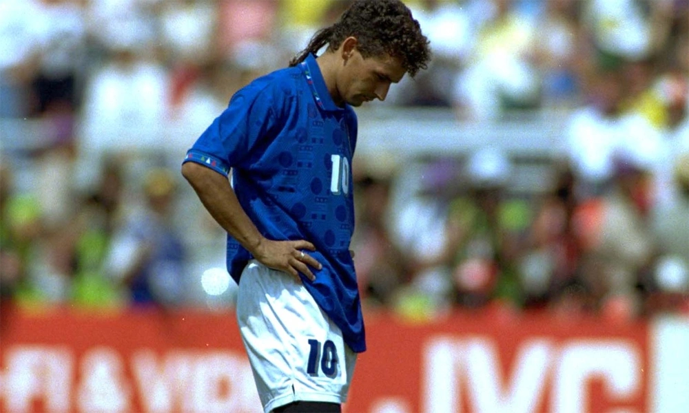 Trong trận chung kết gặp Brazil, Roberto Baggio đá hỏng quả luân lưu quyết định khiến Ý thua 2–3. Hình ảnh anh cúi đầu giữa nắng gắt sân Rose Bowl đã trở thành biểu tượng của nỗi buồn bóng đá.